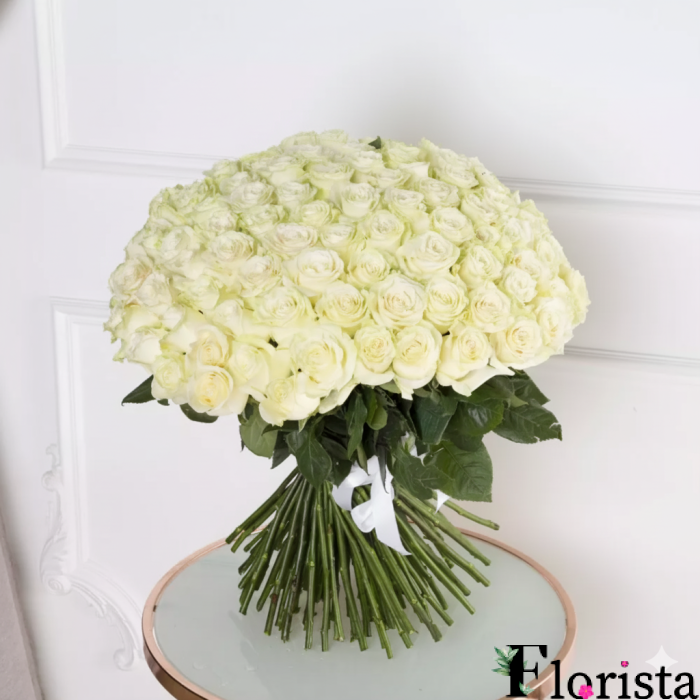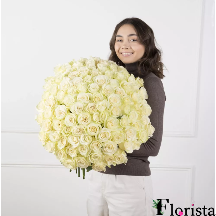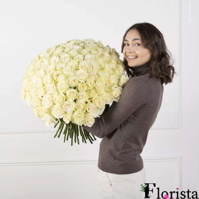 101 білих троянд - Преміум троянди Аваланч (60см-70см)