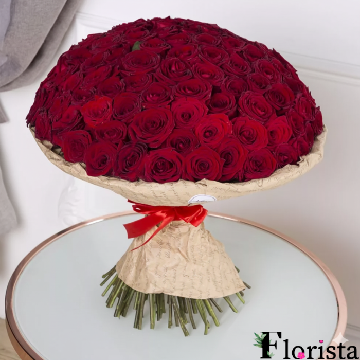 101 троянда - троянди преміум Ред Наомі (50см)