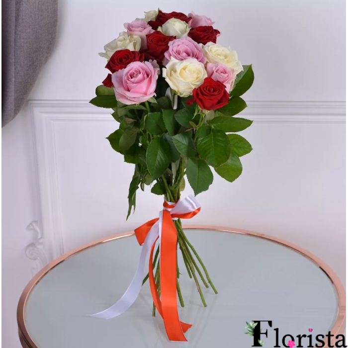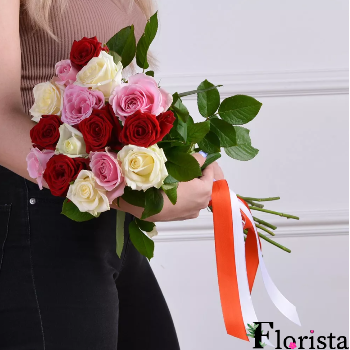 Опис до 15 різнокольорових троянд - троянди преміум (60см-70см)