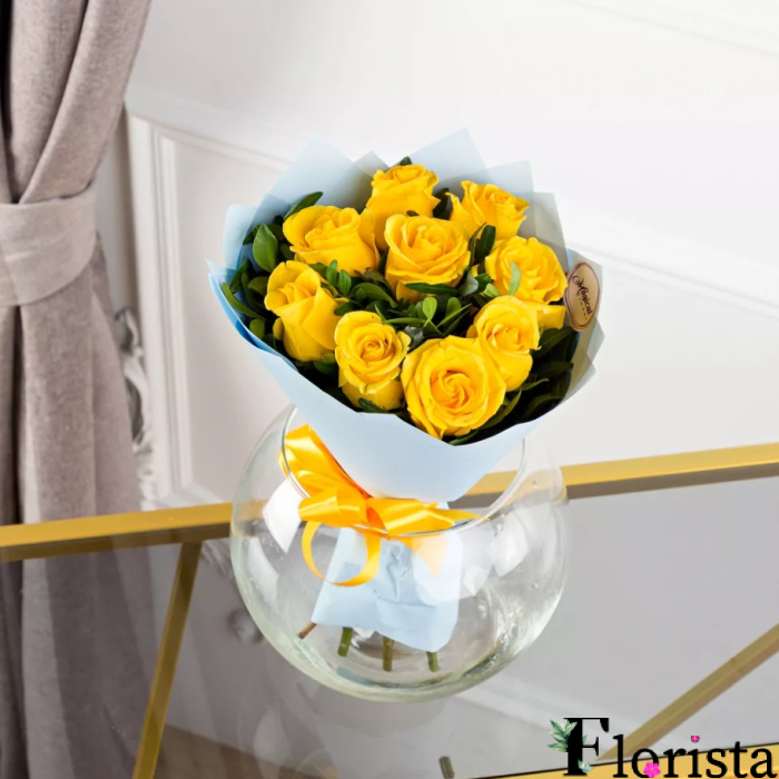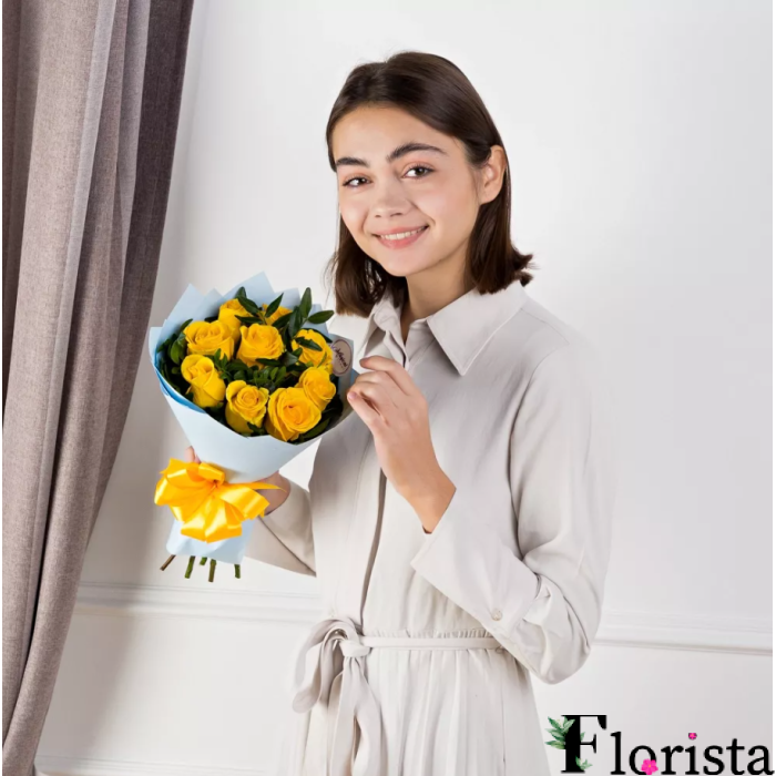 Опис до 9 жовтих троянд (50см)