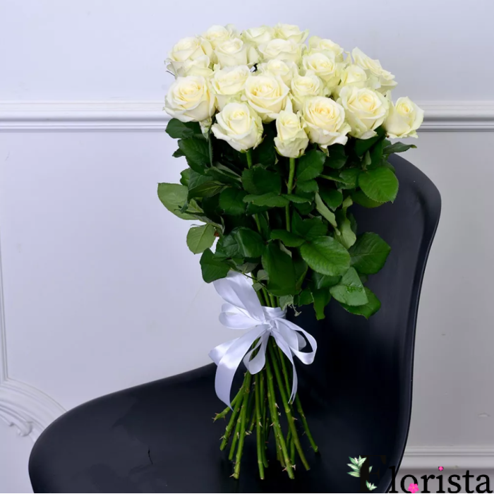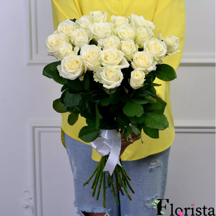Букет із 21 білої троянди (60см-70см)