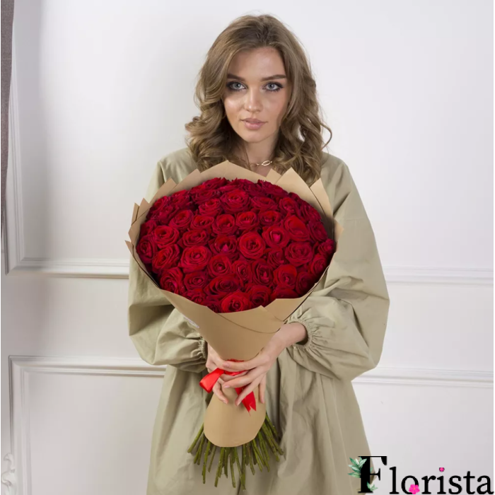 Написати відгук до Букет із 51 червоної троянди (60см)