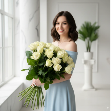 Букет Із 25 Білих Троянд (60см-70см)