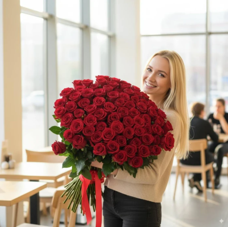 Букет Зі 101 Червоної Троянди (70см)
