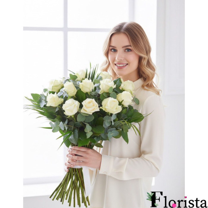 Букет із 12 білих троянд Доставка квітів у Латвії
