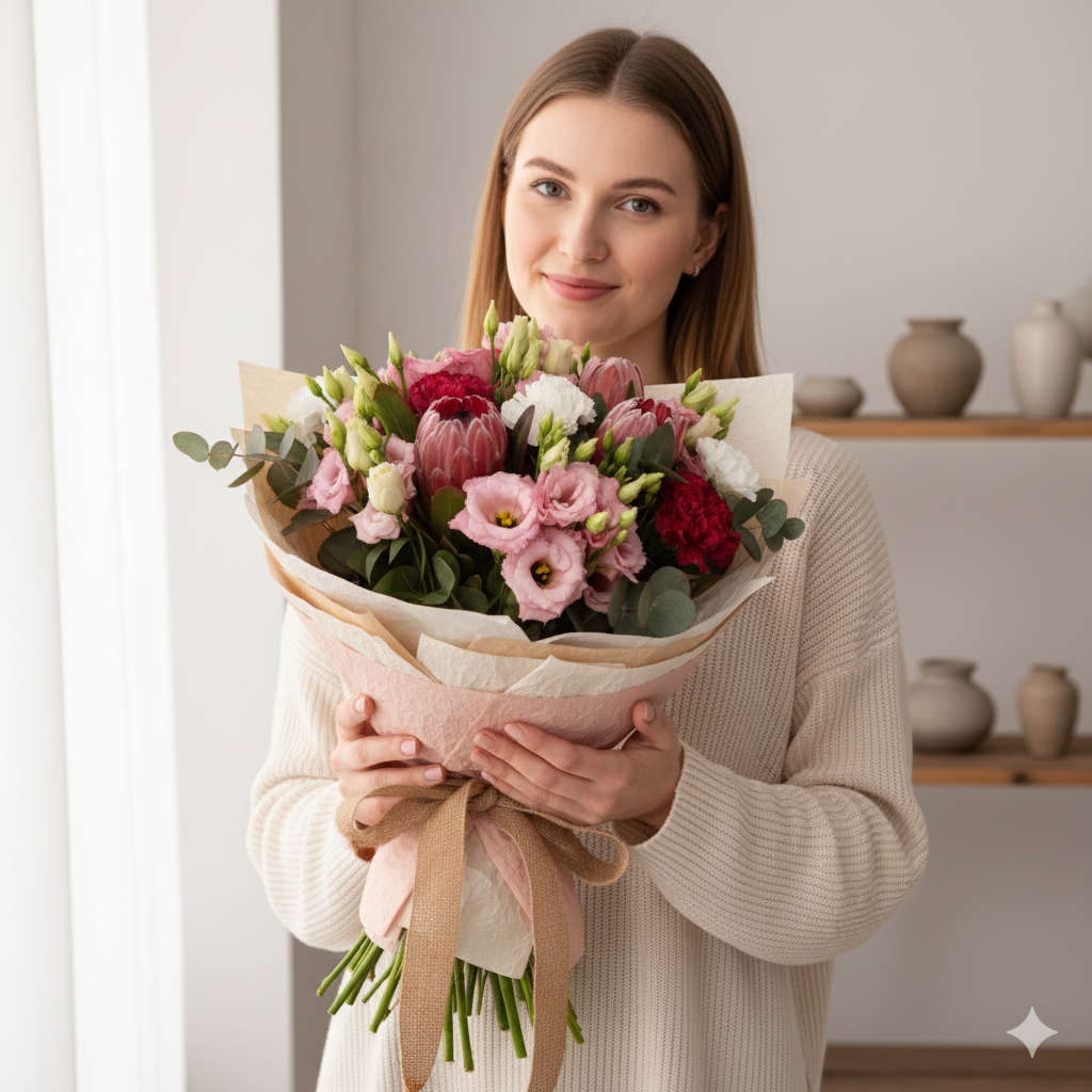 Крім стандартних пропозицій, у низці міст з нами працюють талановиті флористи, які створюють унікальні авторські букети.