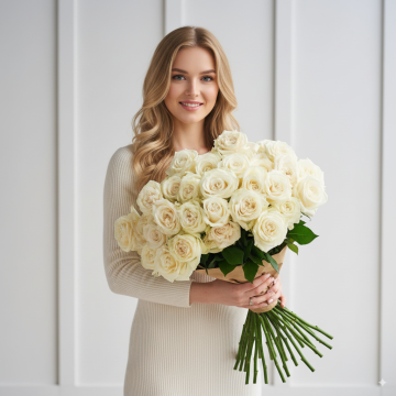 Букет із 39 білих троянд (40см-50см)