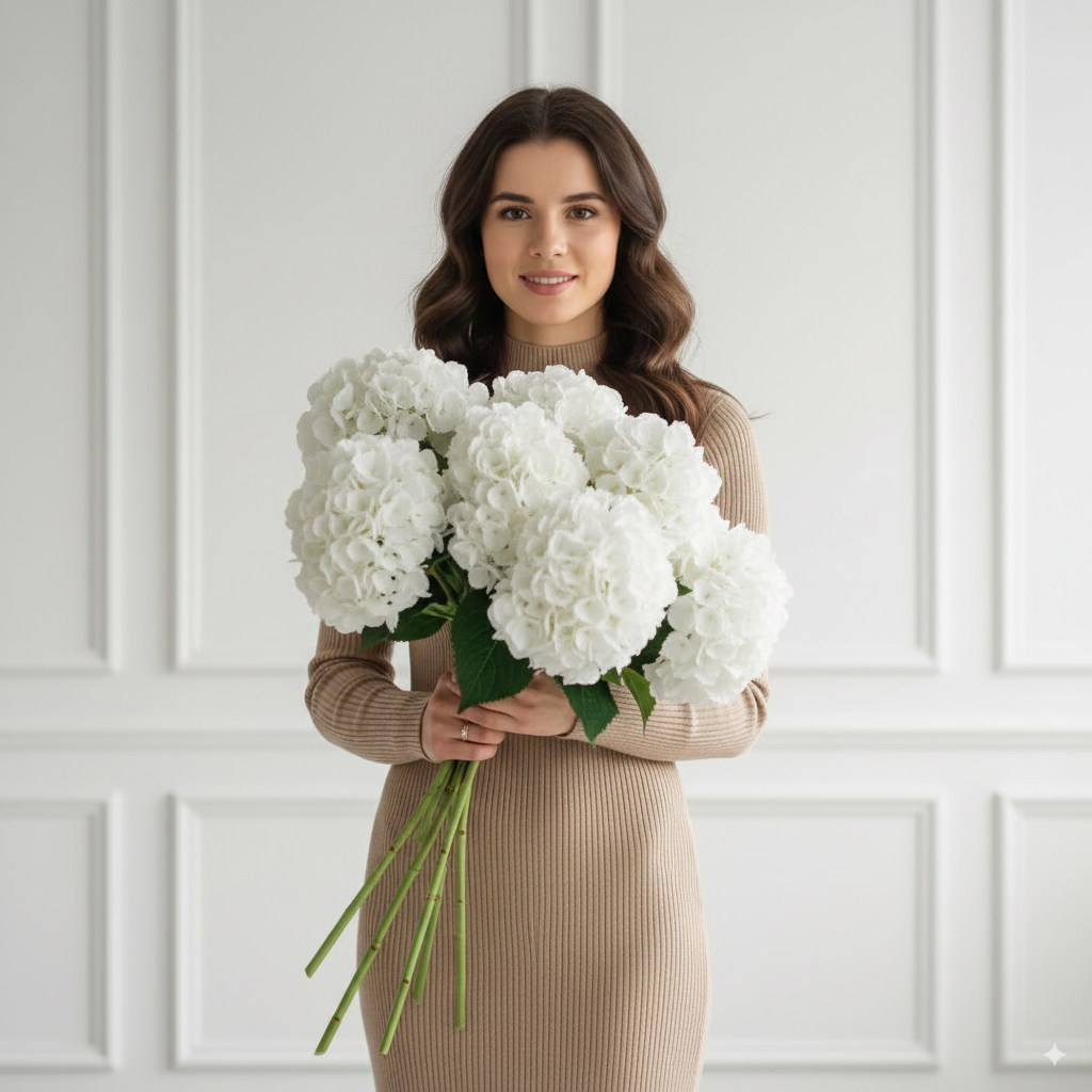 Букет із 8 білих гортензій