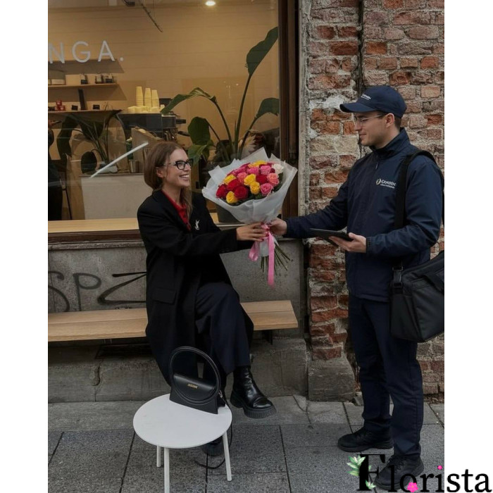Мюнхен, Німеччина - Букет з 15 різнокольорових троянд.