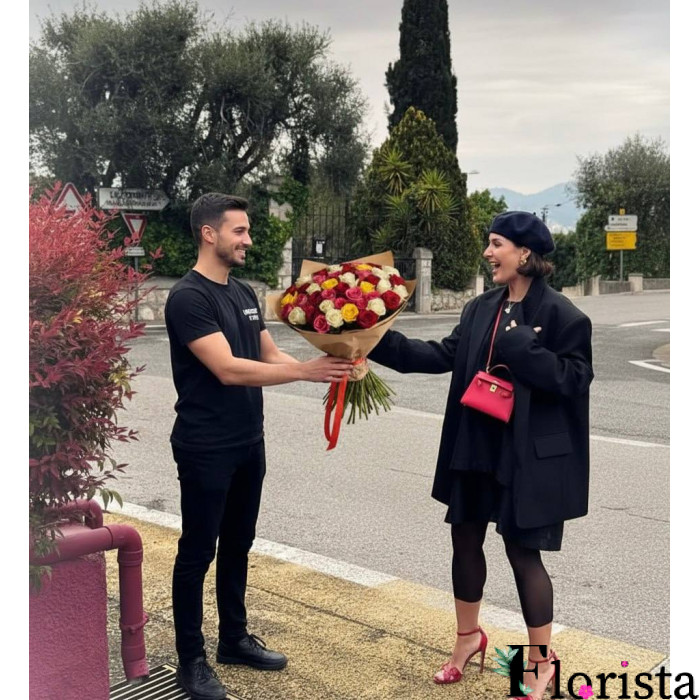 Ніцца, Франція - Букет з 51 різнокольорових троянд
